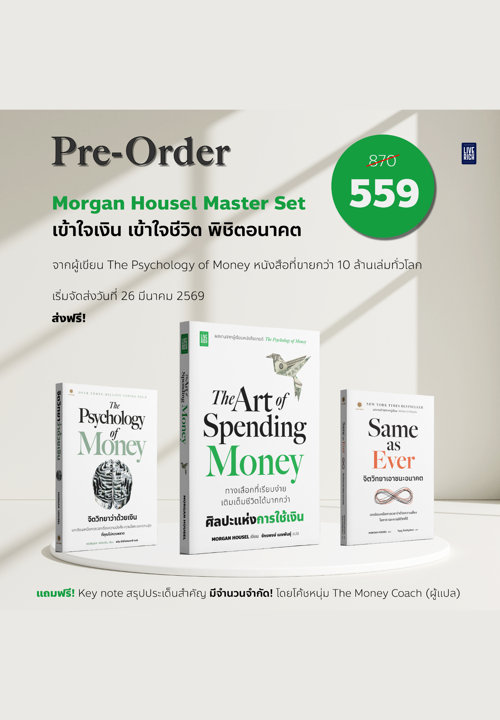 ![[PRE-ORDER] Morgan Housel Master Set White (เริ่มจัดส่งวันที่ 26 มี.ค. 2569 เป็นต้นไป) [PRE-ORDER] Morgan Housel Master Set White (เริ่มจัดส่งวันที่ 26 มี.ค. 2569 เป็นต้นไป) - Image 2](https://liverich.co.th/wp-content/uploads/2026/03/The-Art-of-Spending-Money-cover.png)